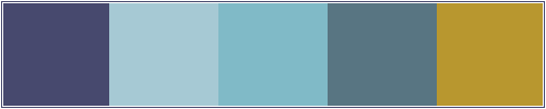 Next I work on the tiles. This set needs six background tiles so I can use variations on the shade that I pick. I made a swatch of the basic colours. As you can see, I concentrated on the blue shades, and added the gold colour of the feather in the header as a contrast.